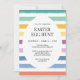 Yellow Simple Colourful Easter Egg Hunt Cute Party Invitation features a white egg-shaped element at the centre, set against a vibrant striped background in cheerful Easter colours like yellow, green, pink, and purple. The front showcases a big "EASTER EGG HUNT" text in black, written in a modern and elegant font. The backside is a solid yellow, adding a bright and festive touch. Perfect for an Easter egg hunt party for kids, this invitation is fully customisable to suit your event details. Need more help? Click the "Message" button below. We are happy to help with custom orders.
