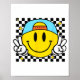 Yellow Smile Face Cute Checkered Peace Smiling Hap Poster