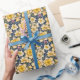 Be ready for those first shoots of daffodils this spring, as it is so hard to time the weather these days. These pretty garden print shows creamy and yellow daffodils on a mellow marine blue background dotted with small pink flowers. Seamless image.