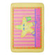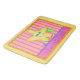 Have fun at thie beach with this colourful orange and yellow bath mat or rug to remind you of the beach. Great for decorating a kids room or bath. This art is great for both kids and adults in a whimsy art style. The whimsy starfish is yellow and is on a pink and orange stripe background and is surrounded by orange boeder with dots. The starfish has a smiling face and is wearing purple shoes and is holding a green bucket pail. The bottom border has the words "Fun in the Sun". The background around the art is yellow. This makes a great gift for a beach lover and is great for a beach home. This is created with original art by Phyllis Dobbs and is vibrant in the yellow, orange, and hot pink colours. Fully customisable for your enjoyment.
