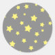 Yellow Stars Grey Pattern Classic Round Sticker