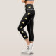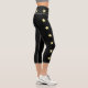 Cool Solid Black Hight Waisted Capris Leggings featuring a set of six yellow stars side stripes. The high waist is also decorated with s set of six yellow stars going around it.