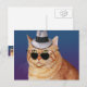 Yellow Striped Cat with Sunglasses and Hat Postcard