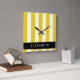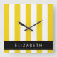 Yellow Stripes, Striped Pattern, Lines, Your Name Square Wall Clock