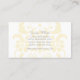 Simple with professional elegance describes this sophisticated Subtle Damask Business Card with a light yellow damask flourish background. This trendy and modern profile card is perfect for an upscale boutique or a creative field such as interior design and can be easily customised with your business details. For more customisation options, click on the Customise It button.
