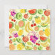 Fun and summery design features a pattern of hand drawn fruit graphics on a pale sunshine yellow background. The pattern is made up of Summer time favourites such as watermelon, grapes, kiwi, cherries, lemons and more! In the centre is a solid white square with green trim. Inside the square is a faded graphic of the watermelon. Inside the square is customisable text in black font where you can add your BBQ party information. The reverse side of the invitation has the same yellow with fruit pattern design. This sweet and yummy design is perfect for when hosting your backyard barbecues or Summertime dinner parties, pool parties, etc.