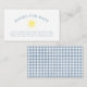 The perfect match to your preppy baby boy shower invitation, this baby shower books for baby insert (enclosure) card features a hand painted watercolor rattle with bow, gingham pattern, set in a white and muted French blue color palette. Use this enclosure card to let guests know to bring a book instead of a card. All text in this design is editable. You can find the coordinating gingham baby boy baby shower suite products in my Zazzle store, Ashlee Townsend Design.