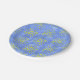 Yellow Sun on watercolor background in blue. Custom decorative paper plates. Party decor idea.