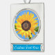 Yellow Sunflower Against Sun on Blue Sky Your Text Silver Plated Banner Ornament