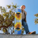 Yellow Sunflower and Bees on Blue Sky - Summer Day Skateboard