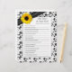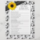 You can personalise the name on this yellow sunflower, black and white floral and ribbon personalised bridal shower "who knows the bride best" game. You can change the text using the personalise options. The colours on this bridal shower game are yellow, black and white... perfect for a spring, summer, or fall / autumn wedding shower.