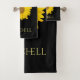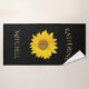 Yellow Sunflower Custom Name Black Bath Towel Set