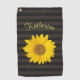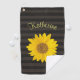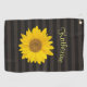 A close-up photograph of beautiful bright yellow sunflower with custom name on a dark brown and almost black striped background. Personalise easily by editing the name.