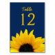 Yellow Sunflower Flower Navy Blue Wedding Table Number