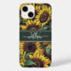 Rustic Sunflower Pattern with Script Monogram Phone Case. Unique and trendy sunflower with yellow and green sunflower pattern, with a custom monogram template and elegant calligraphy script name template. This pretty farmhouse inspired phone cover would make a thoughtful gift for mum, daughter, grandma, etc.