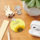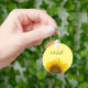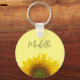 Monogram keychain with a yellow sunflower bloom and a yellow background. With black script typography lettering, you can personalize with your own name. A lovely accessory for your keys or a lovely gift for someone special.