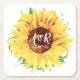 Yellow Sunflower Monogram Wedding Square Paper Coaster