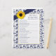 Yellow Sunflower Navy Blue Bridal Shower Game