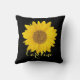 Yellow Sunflower on Black with Custom Name Cushion