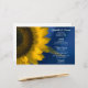 Customise the pretty Yellow Sunflower on Blue Wedding Menu with the details of the meal that you will serve at your summer or fall wedding brunch, bridal shower luncheon or marriage reception when you add the salad or first course, entree or second course and dessert or third course. This elegant custom flowery wedding menu features a floral photograph of a yellow sunflower blossom with a blue background.
