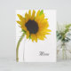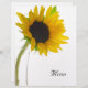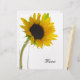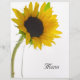 Customise the pretty Yellow Sunflower on White Wedding Menu with the details of the meal that you will serve at your summer or fall bridal shower luncheon, marriage reception dinner or post wedding brunch with the salad or first course, entree or second course and dessert or third course. Personalise it with the names of the bride and groom, venue location and date. This elegant custom flowery wedding menu features a floral photograph of a sunflower blossom on the stem in a glass vase with a white background.