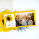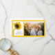 Send thoughts of appreciation and gratitude after your summer or fall engagement garden party, bridal shower or marriage ceremony and reception with the pretty Sunflower on White Wedding Thank You Photo Card. This elegant custom flowery wedding thank you photocard features a close up floral photograph of a yellow sunflower blossom on the stem in a glass vase with a bright white background.