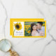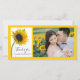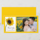 Send thoughts of appreciation and gratitude after your summer or fall engagement party, bridal shower or nuptials with the pretty Sunflower on White Wedding Thank You Photo Card. This elegant custom flowery wedding thank you photocard features a close up floral photograph of a yellow sunflower blossom on the stem in a glass vase with a bright white background.