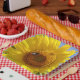 A bright yellow sunflower and a little bee. Click personalise and replace the image with your own, or leave it as is.