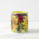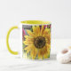Yellow Ringer mug with striking sunflower design, brightens the day and gets the morning off to a great start with a cheery image !