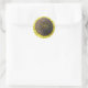 This beautiful sheet of round stickers features a detailed close-up photograph of a pretty yellow Sunflower. The photograph was taken using macro photography and shows a beautiful contrast between the pale yellow petals and the big dark central seed head of the flower.