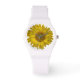 The pretty Yellow Sunflower Wrist Watch makes a great gift idea for a flower lover, gardener or florist. This custom botanical time piece features a floral photograph of a yellow sunflower blossom with a white background.
