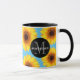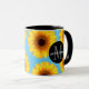 Yellow Sunflowers Add Your Name and Initial Blue Mug
