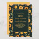 Cute yellow sunflowers on black 60th birthday party invitation for women. Personalise by adding the name of the guest of honour, her age, and her party information. Contact us for help with customisation or to request matching products.