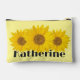 Three yellow sunflowers with custom name in a retro font on light yellow background.