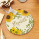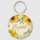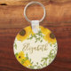 These simple yellow sunflowers personalised keychain has hand drawn watercolor flowers and a gold editable name on a beige background. Cute and useful, too!