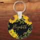 These simple yellow sunflowers personalised keychain has hand drawn watercolor flowers and a gold editable name on a black background. Cute and useful, too!