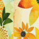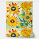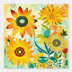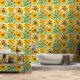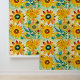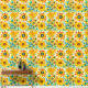 Country floral pattern of yellow sunflowers with green leaves foliage background.