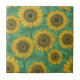 Yellow abstract sunflowers pattern on green background ceramic tile
