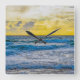 Yellow Sunset Over Blue Sea Square Wall Clock