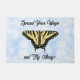 Personalise with an expression, text or name, or no text at all on this design of a black and yellow Western Swallowtail butterfly, one of the most beautiful large butterflies in the world, floating on a blue sky with puffy white couds. My original painting is based on photographs I took in my own butterfly-friendly garden in the Southwest.