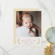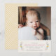 Announce the arrival of your beautiful baby girl with this simple and sweet birth announcement. The name of your baby, as well as the birth information, is framed by a wreath of delicate flowers and leaves. The top of the design features a pretty scalloped border. There is also space for a large photo of your new addition. The back of the card features a yellow, hand-drawn gingham pattern... Be sure to check out the coordinating self-addressed envelope.