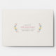 This pretty self-addressed envelope features the card recipient's name and address framed by a wreath of delicate flowers and leaves. There is space on the back flap for the customer's name and address. The inside of the envelope features a yellow, hand-drawn gingham pattern. While this design was created to coordinate with the "Sweet Floral" birth announcement collection, I think it would be perfect for a baby shower or wedding as well.