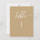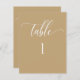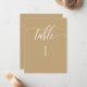 Modern and elegant minimalist style Yellow tan number with modern hand written calligraphy details. Clear area on the bottom allowing you to use all kinds of table number holders without obstructing the number. Modern medium size card for a sleek, simple look. Available in a variety of colours. Have all tables in same colour, or mix several colours complimenting your colour theme. Coordinating table seating plan cards with guest names, as well as slim guest name place cards also available.