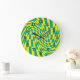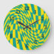 Yellow + Teal Warped Chequerboard Illusion Large Clock