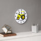 This tractor design wall clock is a timekeeping device designed to hang on a wall, serving as both a functional tool and a decorative focal point for a room. Made from acrylic and features a pre-installed backside hanging slot for easy hanging and a non-ticking design. You can have any colour background on this wall clock just simply click on the edit this design button and change the background colour to whichever colour you desire. Should you require any help with customising then contact us through the link on this page. Tractor design wall clock