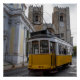 Yellow tram on Lisbon Cathedral in Portugal Poster