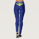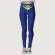 Elegant triple yellow boomerang on blue leggings. Boomerang symbols remind us that what goes around comes around.
