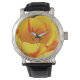 Combine the elegance of a black leather strap, silver surround and the vibrant yellow of a spring tulip. This striking timepiece is both stylish and colorful and a wonderful accessory to complement any outfit.