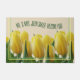 This doormat is adorned with beautiful yellow tulips that are waiting to welcome Spring and your guests. Set on a beige background, this design has a graphic touch, with a three sided border of yellow and green. The text and the background colour can be personalised.