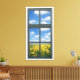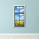 Yellow Tulips and a Blue Sky Spring Window Faux View Wrapped Canvas. A beautiful fake window view canvas print: a spring fantasy landscape with yellow tulip flowers field and a perfect blue sky with white fluffy clouds full-colour photography canvas. This beautiful tulips view wrapped canvas is fully customisable, add your texts and images! A great spring tulips window view landscape gift at your home or in the office, for your best friend or a family member!